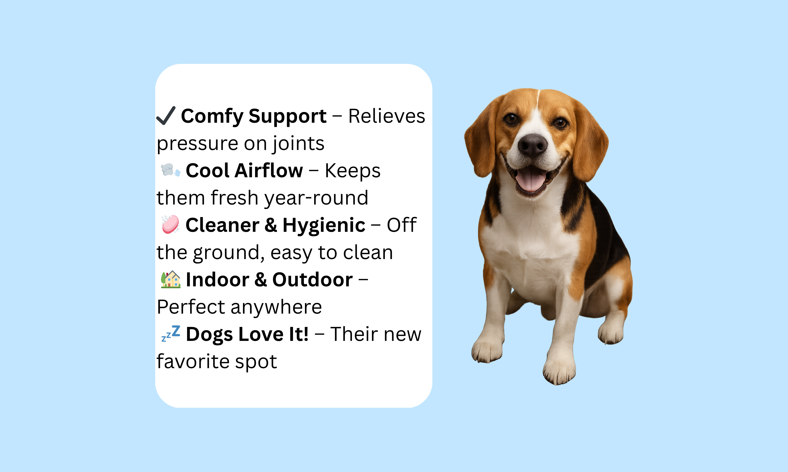 Experience unparalleled comfort and convenience for your pet with our innovative design, promoting health and relaxation while effortlessly integrating into your lifestyle, indoors or out.
